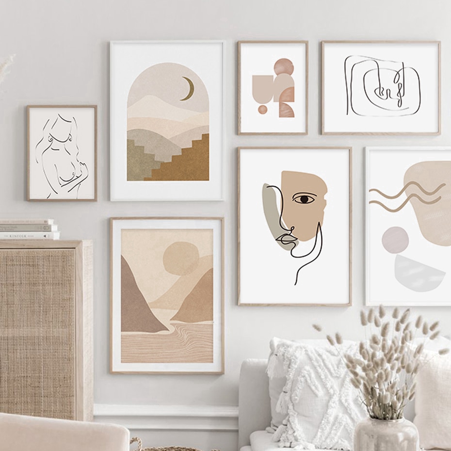 Abstract Boho Style Scene Sketch Line Canvas Painting Poster Print